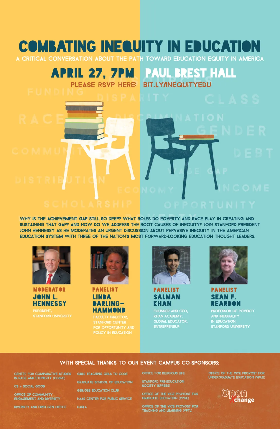 Why is the achievement gap still so deep? What roles do poverty and race play in creating and sustaining that gap? And how do we address the root causes of inequity? Join Stanford President John Hennessy as he moderates an urgent discussion about pervasive inequity in the American education system with three of the nation's most forward-looking education thought leaders:
