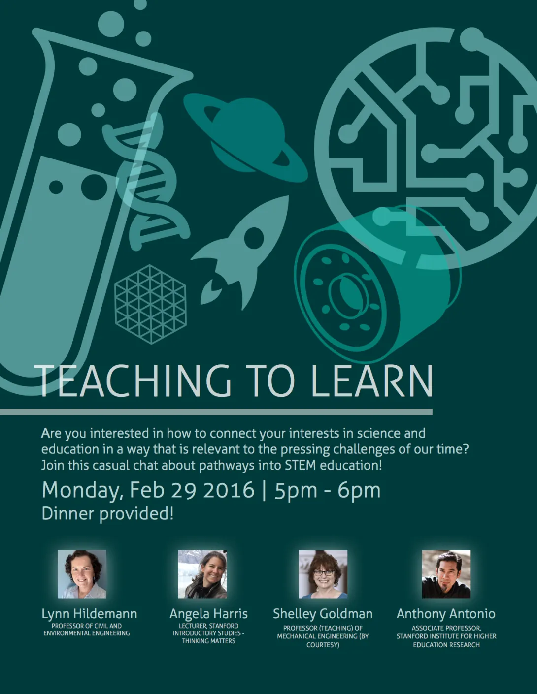 Dr. Angela Harris is a postdoctoral lecturer in the Thinking Matters program at Stanford. Alongside her work in environmental engineering, Angela conducts research related to education, particularly in the engineering fields. Currently her work related to education seeks to better understand student career choices and institutional support for students in career development and career preparation.